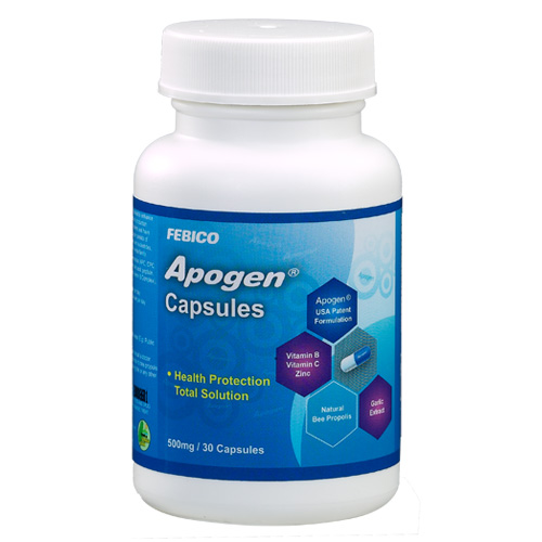 Apogen este un supliment alimentar care are rolul de a proteja organismul de diferiți viruși, precum cei gripali (de tip A, B și H1N1), intestinali (Virusul Coxsackie A162 sau enterovirulul 71), herpetici, virusul dengue, virusul sincitial respirator (RSV sau VSR) și rotavirus. Apogen este un produs care a primit numele de superaliment, deoarece este obținut din microalga FEM-101, o algă albastră verzuie, foarte bogată în nutrienți. Proteina din microalge este patentată în SUA și Taiwan.